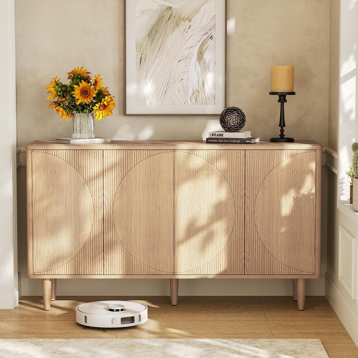 LITTLE TREE 59-Inch Buffet Cabinet Sideboard with Storage, Modern Sideboard Buffet Table with Doors for Living Room, Dining Room