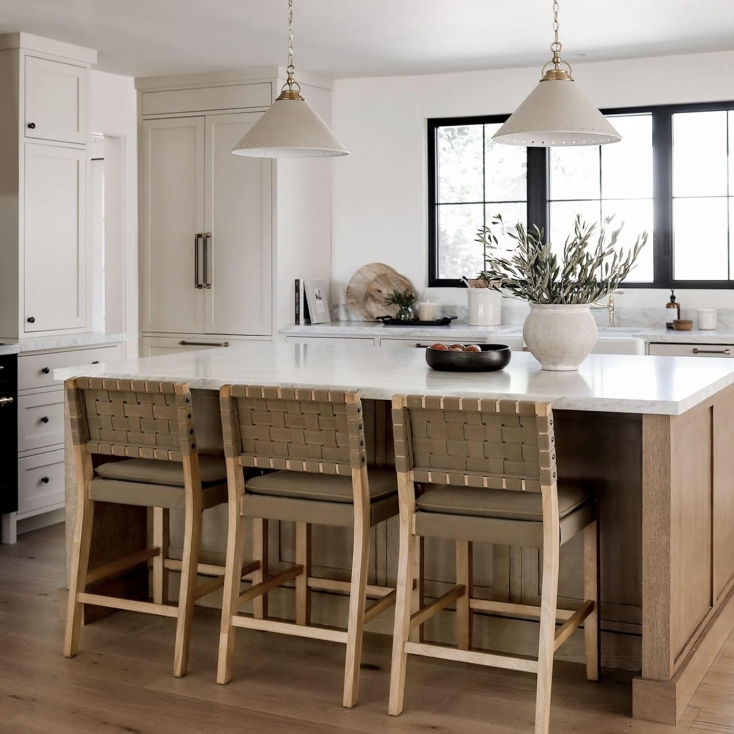Nathan James Cohen Mid-Century Modern Leather Bar Stool, Counter Height Chair in Solid Wood Frame with Footrest and Woven Leather Back for Kitchen, Natural Brown, 1 count, Barstool - 24"