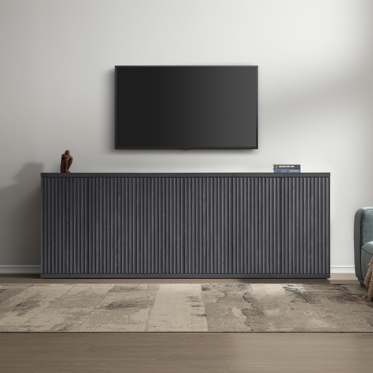 SICOTAS Buffet Cabinet with Storage Accent Sideboard Modern Credenza with Doors & Shelves Fluted Media Console Mid Century Coffee Bar Table for Living Room Kitchen Dining Room Hallway(3PCS)