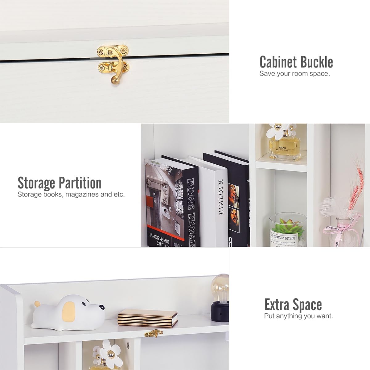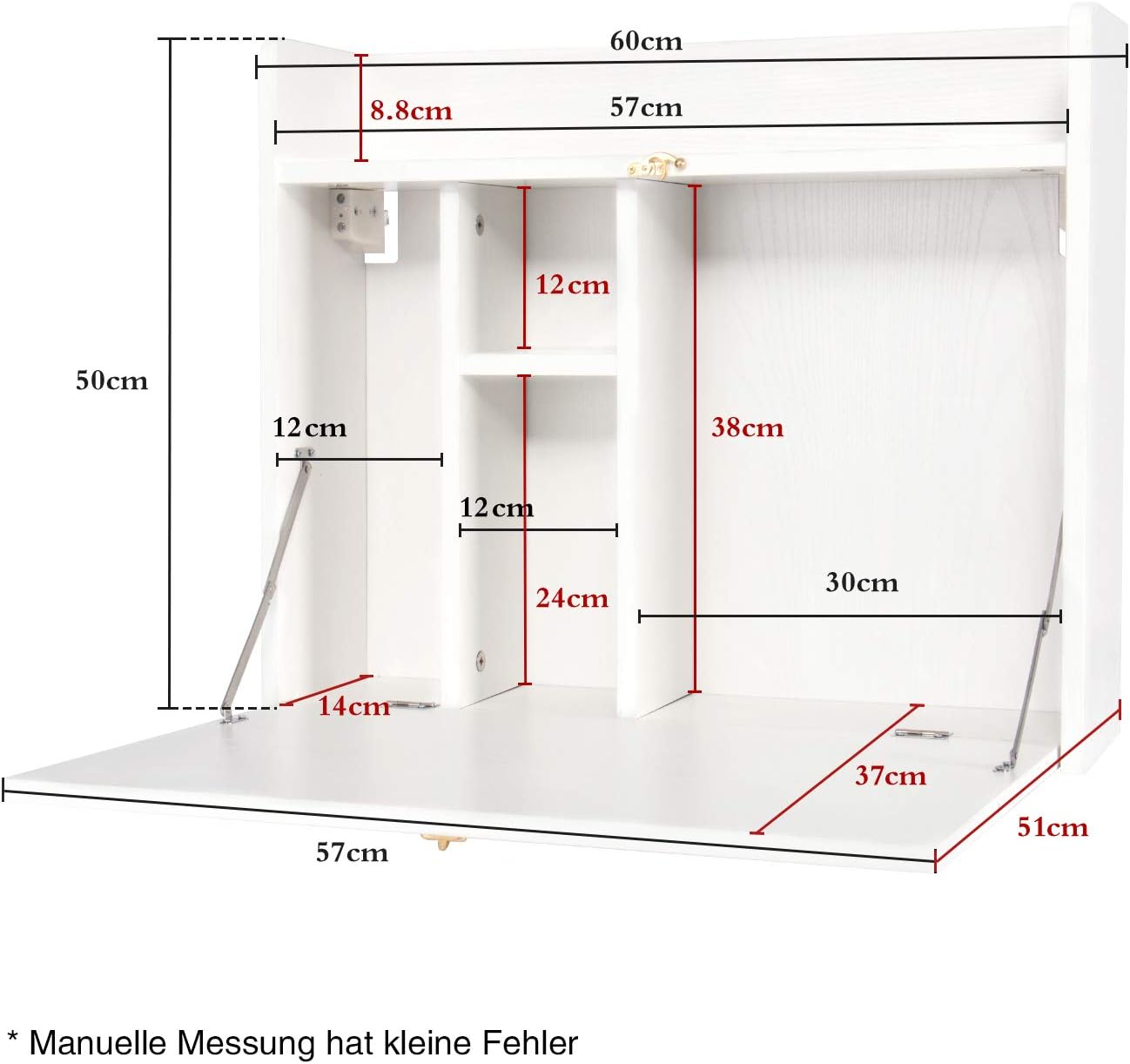 YUSING Wall Mounted Table, Multifunctional Fold Down Wall Mounted Laptop Computer Desk with Storage Compartments for Home, Office, White